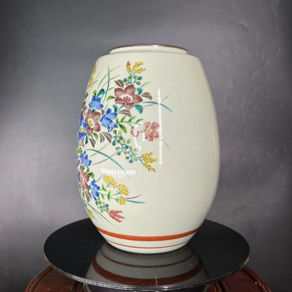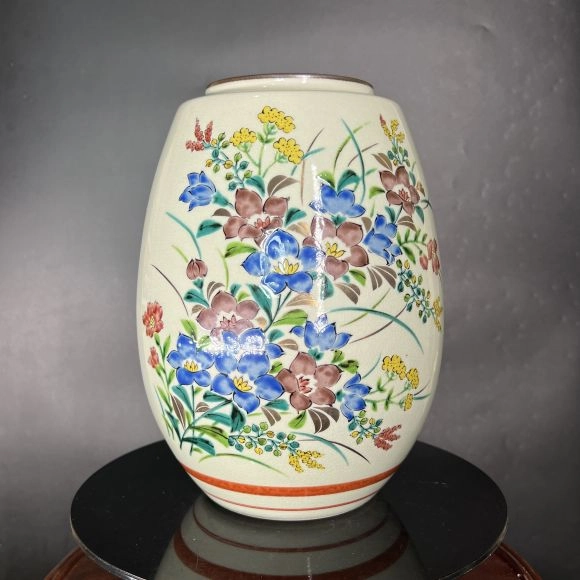 Họa Tiết Độc Đáo: Các họa tiết được vẽ tay tỉ mỉ, sử dụng màu sắc truyền thống của gốm Kutani như xanh lam, đỏ, vàng, và trắng.