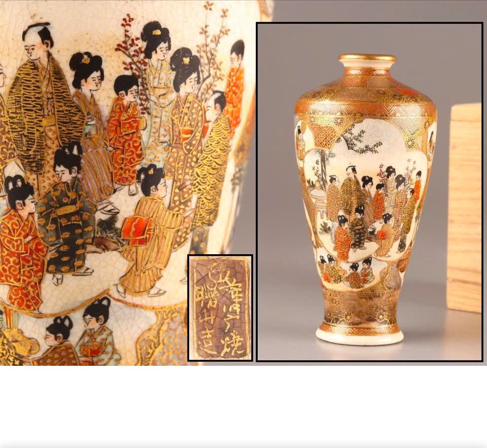 Bình Satsuma mini cổ - Chữ ký nghệ nhân Kinzan hàng cổ