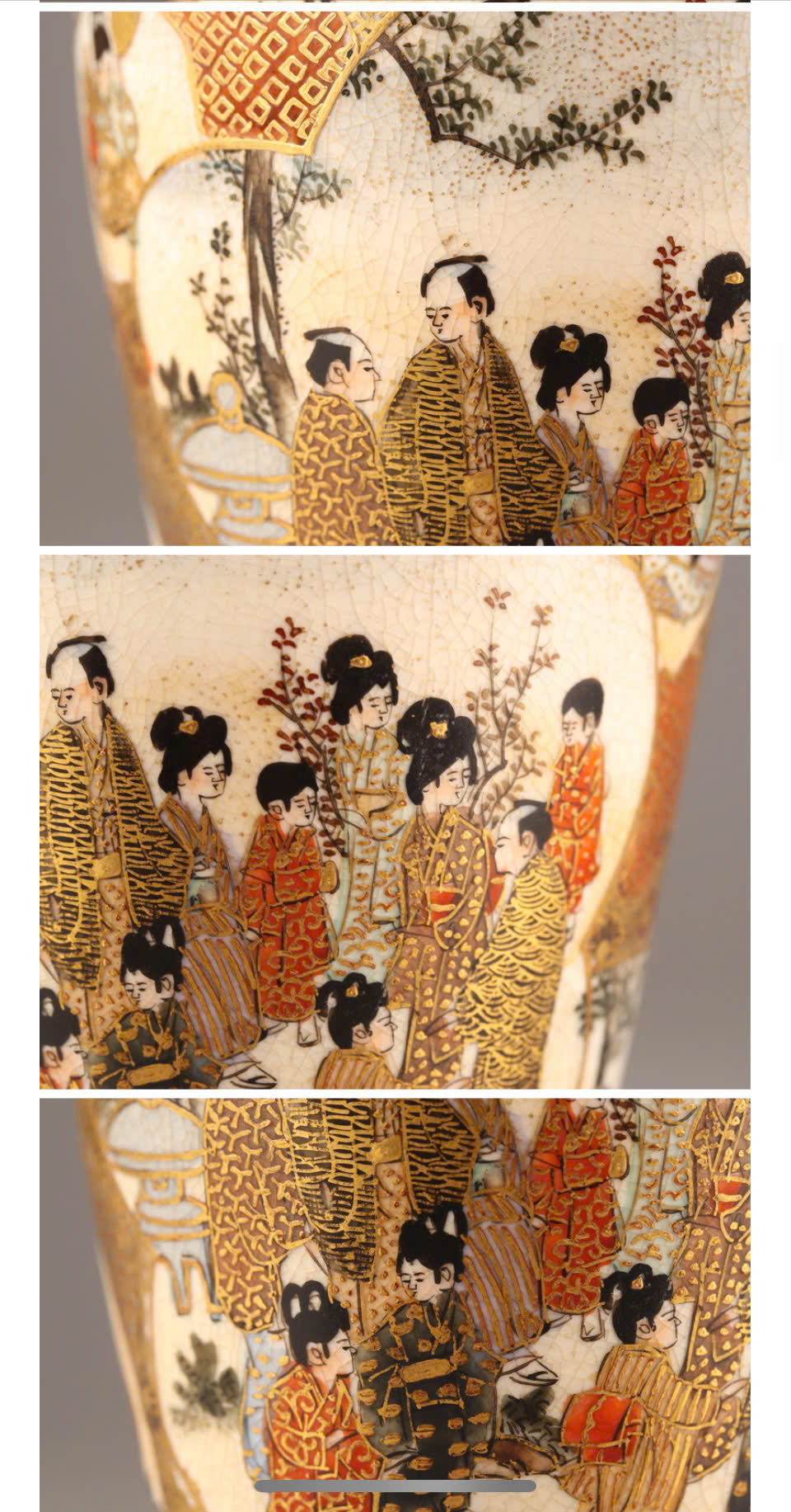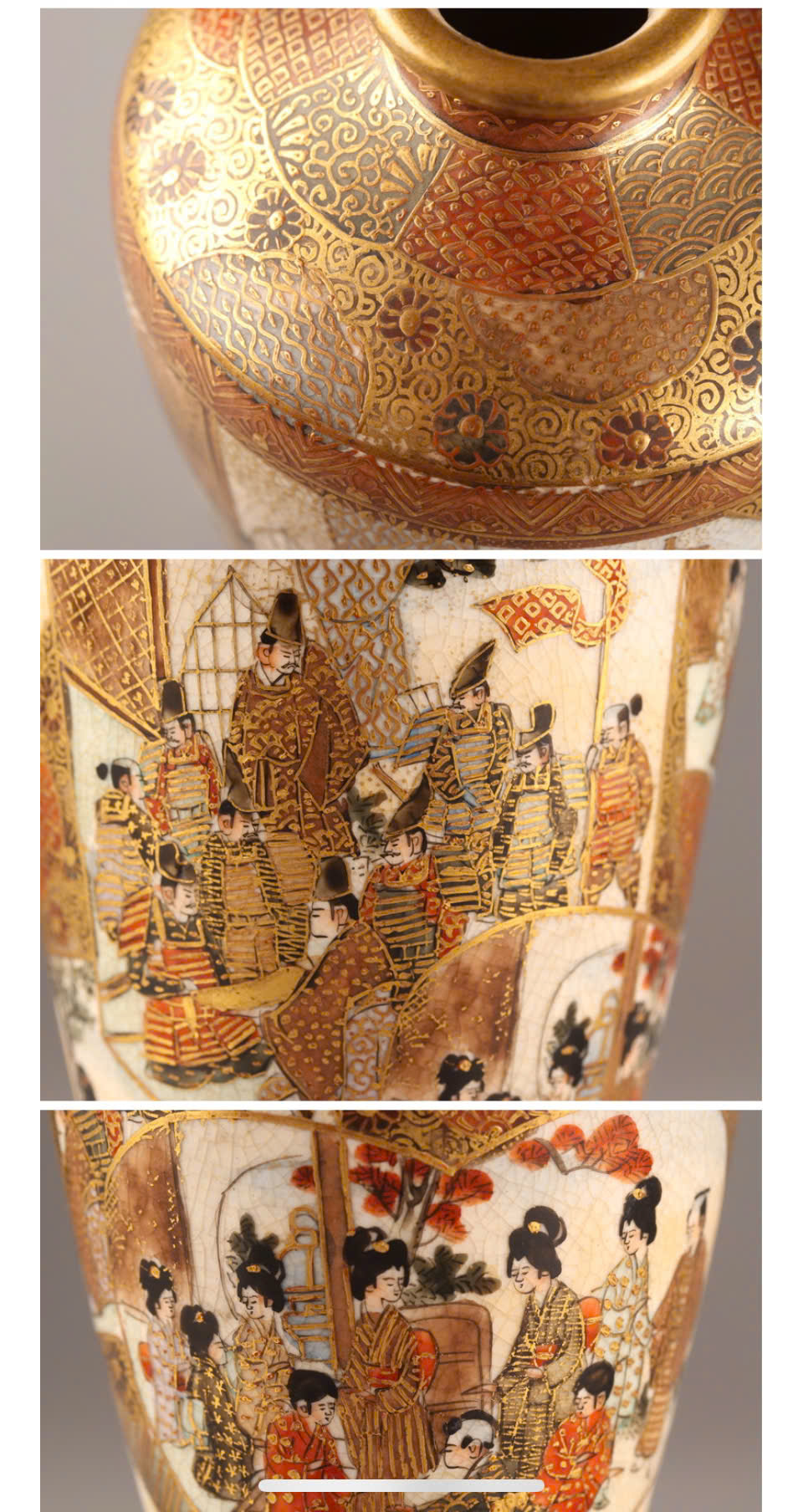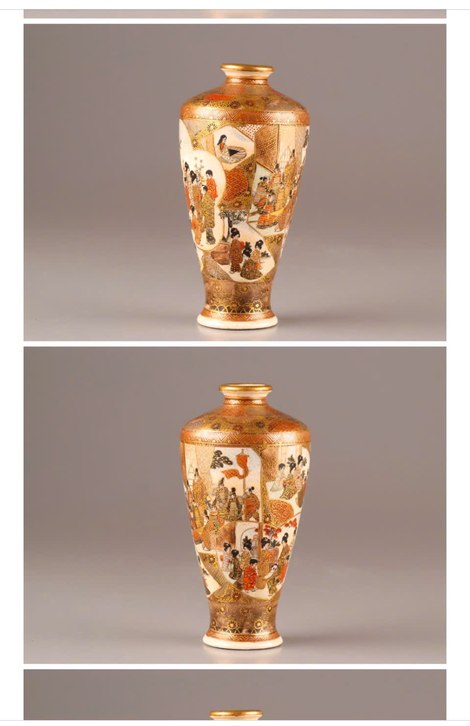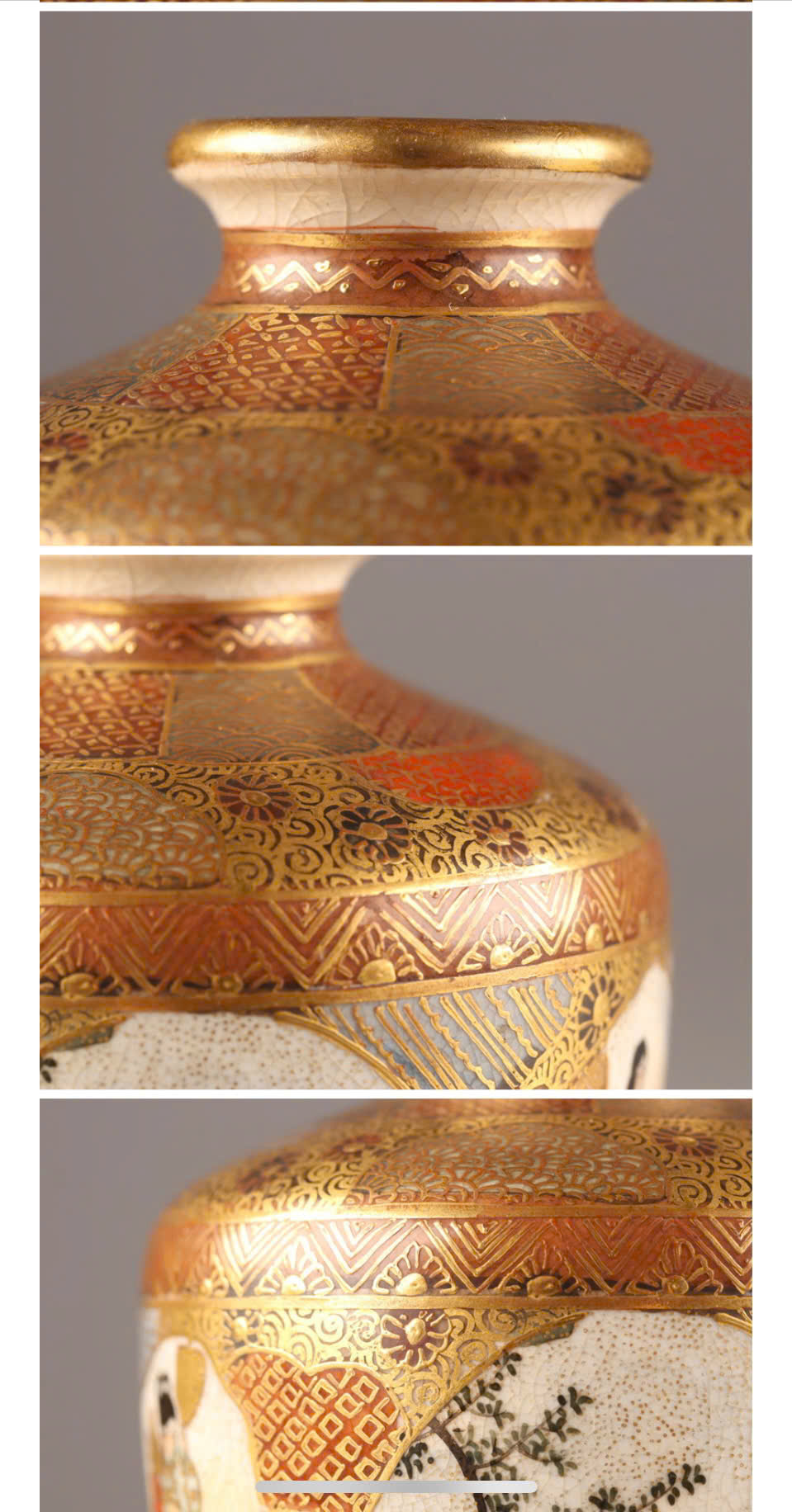 Bình hoa Satsuma cổ thời Minh Trị- Trok 1429, hoạ tiết mạ vàng