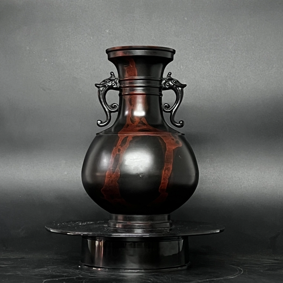 Bình đúc đồng khảm cổ rồng vân đỏ đen Ikebana là một sản phẩm nghệ thuật tuyệt vời, được làm thủ công từ chất liệu đồng cao cấp.