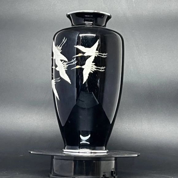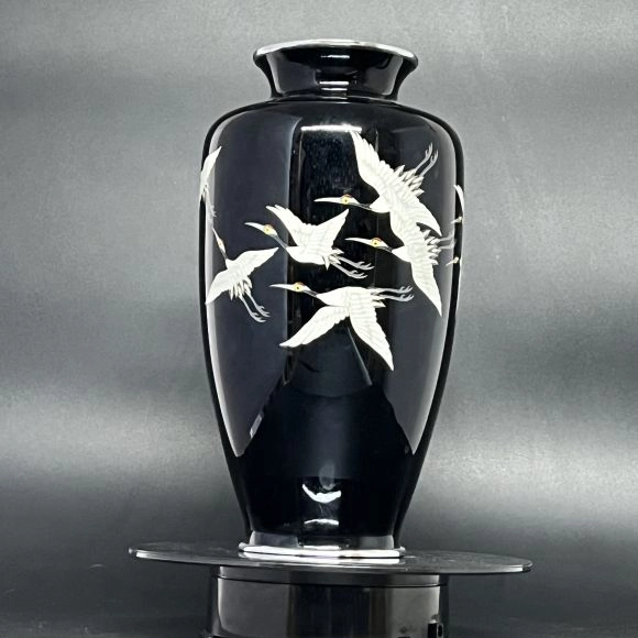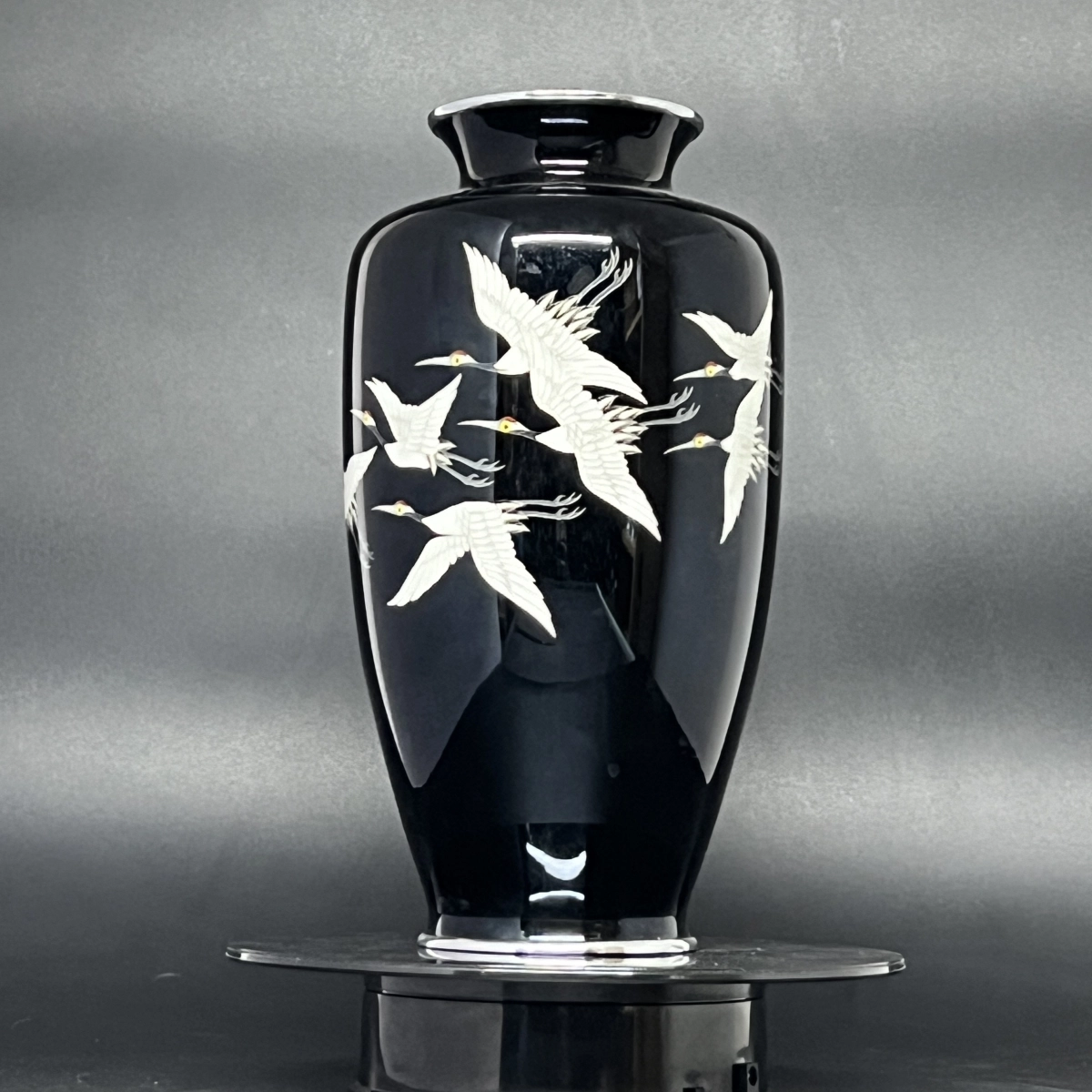 Bình hoa Cloisonne Shippo màu đen cổ điển chim hạc là một sản phẩm trang trí tuyệt vời cho ngôi nhà của bạn.