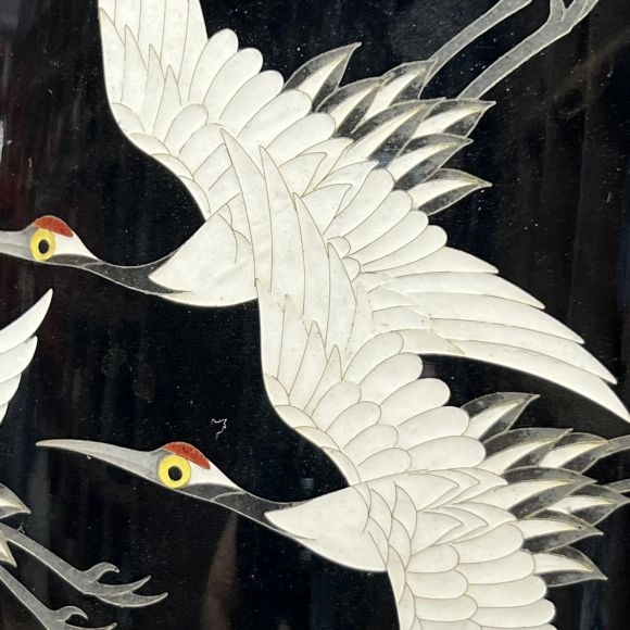 Bình hoa Cloisonne Shippo màu đen được thiết kế với họa tiết chim hạc rất tinh xảo. Sản phẩm này không chỉ để chứa các loại hoa khác nhau, nó còn là sản phẩm trang trí nội thất rất phù hợp căn phòng.