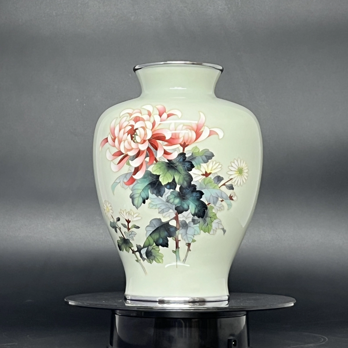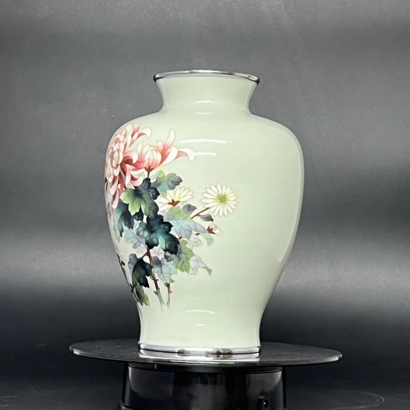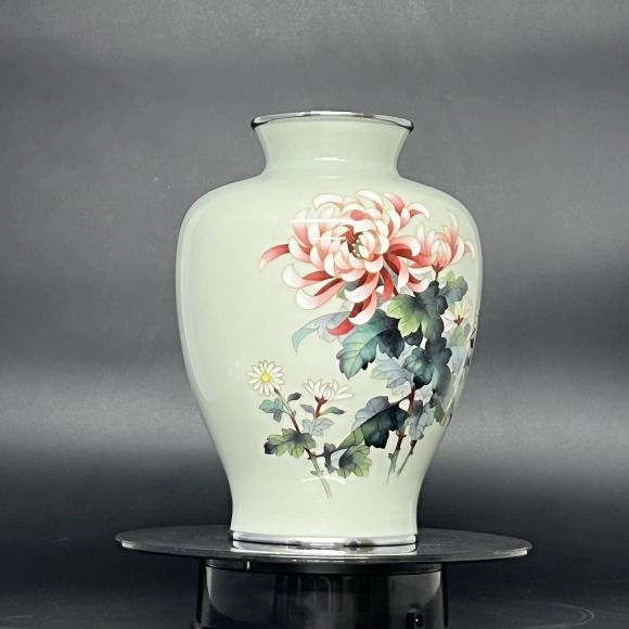 Bình hoa Cloisonne Shippo màu xanh pastel hoạ tiết hoa cúc đại đoá và cúc hoạ mi trắng là sản phẩm trang trí tuyệt vời cho ngôi nhà của bạn.