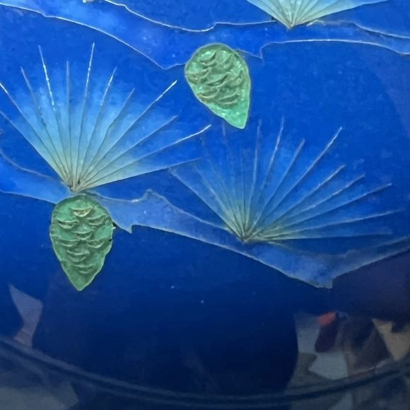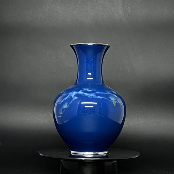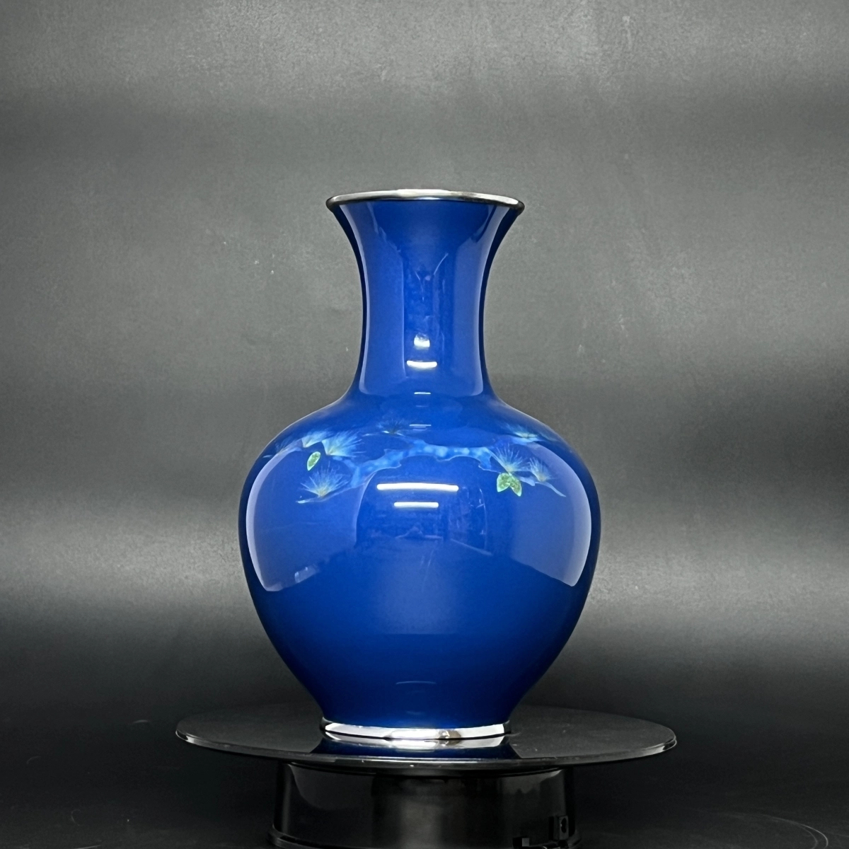 Bình hoa Cloisonne Shippo màu xanh coban hoạ tiết chìm là một chiếc bình hoa tuyệt đẹp.