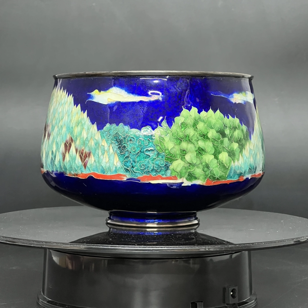 Bình hoa cổ điển Cloisonne Shippo màu xanh coban trang trí đồi núi là sản phẩm hoàn hảo để thêm sự sang trọng và độc đáo vào không gian của bạn.