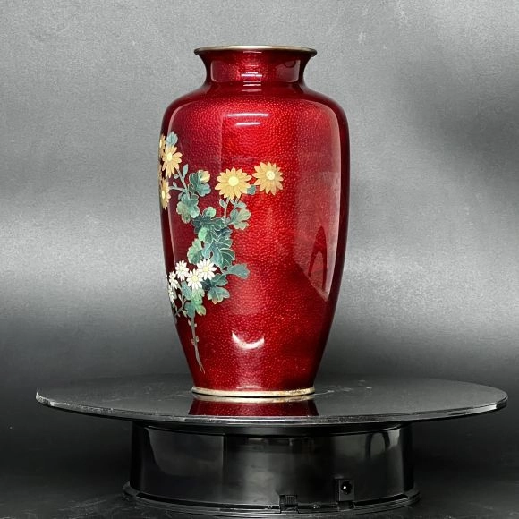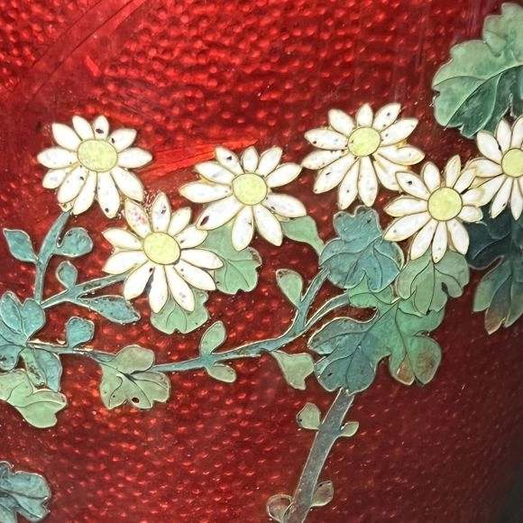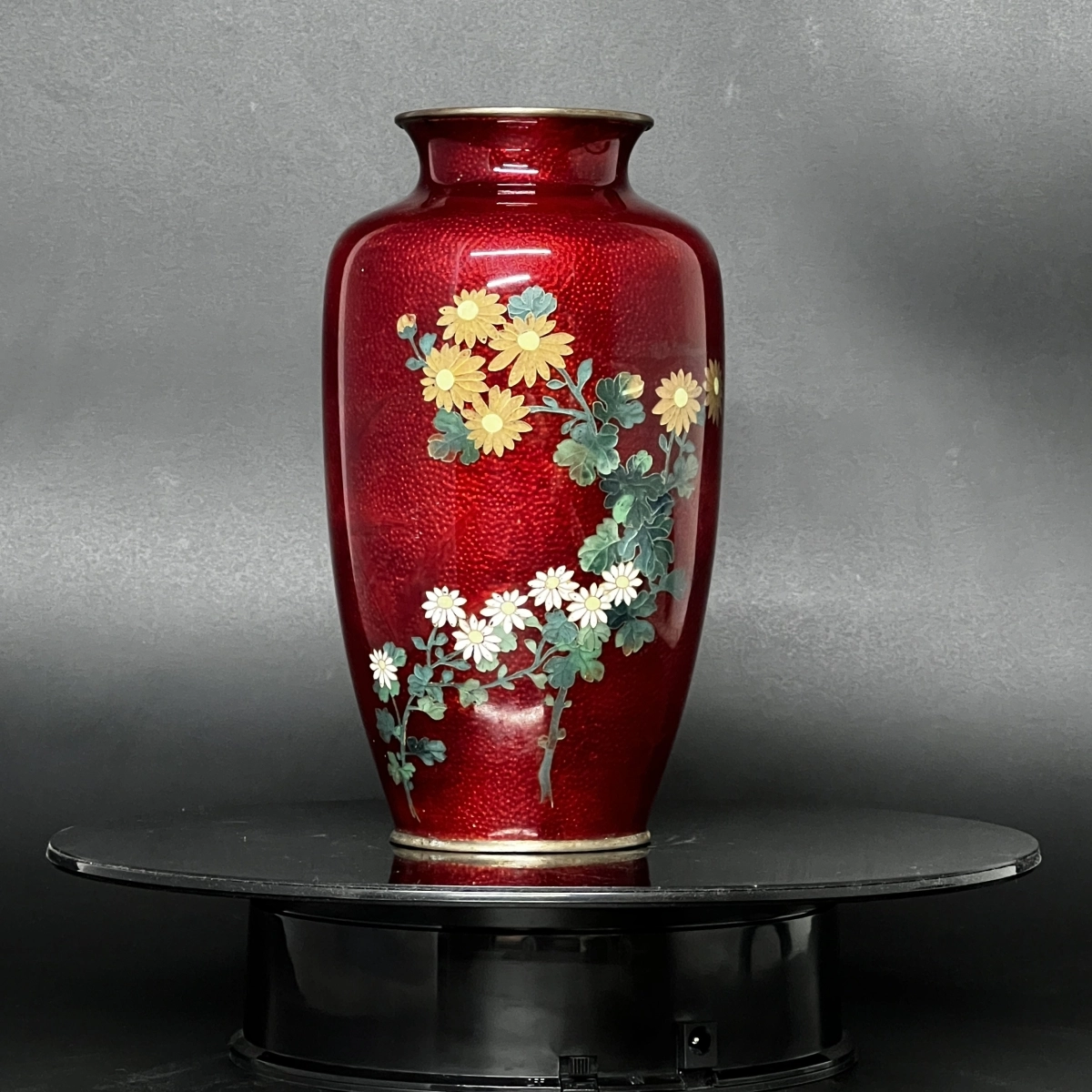 Mang đến không gian sống thêm phần sang trọng và đẳng cấp với Bình hoa cổ điển Cloisonne Shippo màu đỏ đô hoạ tiết hoa cúc hoạ mi.