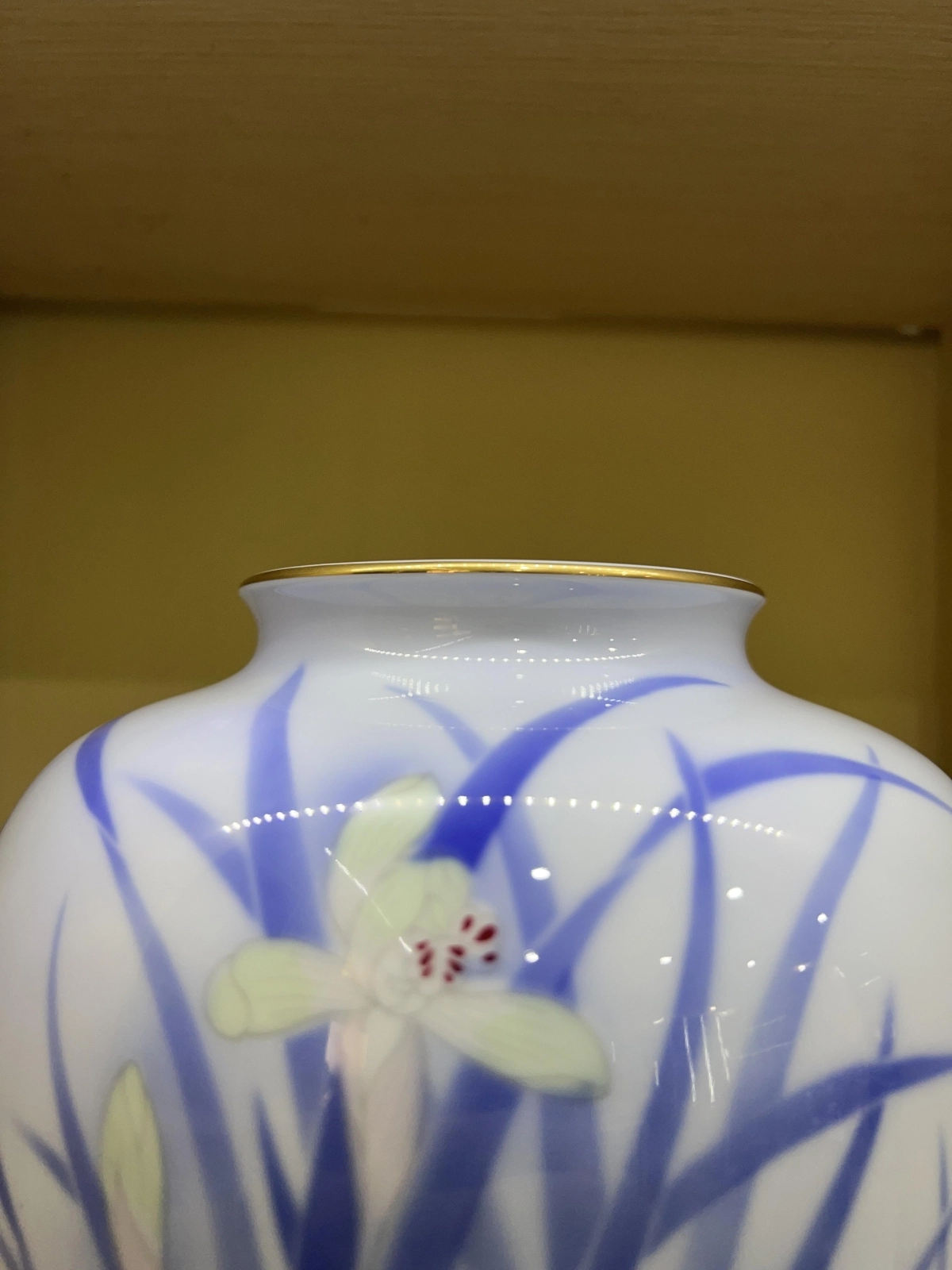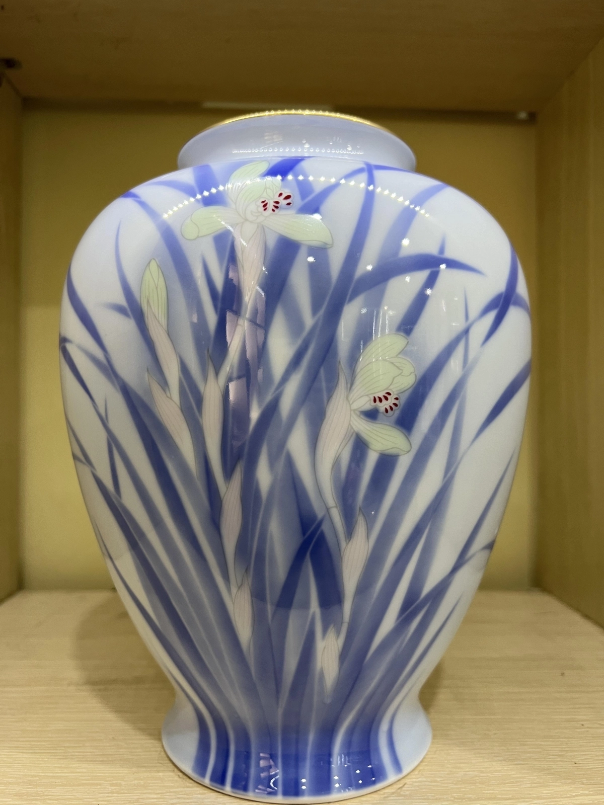 Bình sứ Fukagawa là sản phẩm cao cấp với thiết kế tinh xảo, được vẽ hoạ tiết hoa Lan Irys, mang đậm phong cách hoàng gia Nhật Bản.