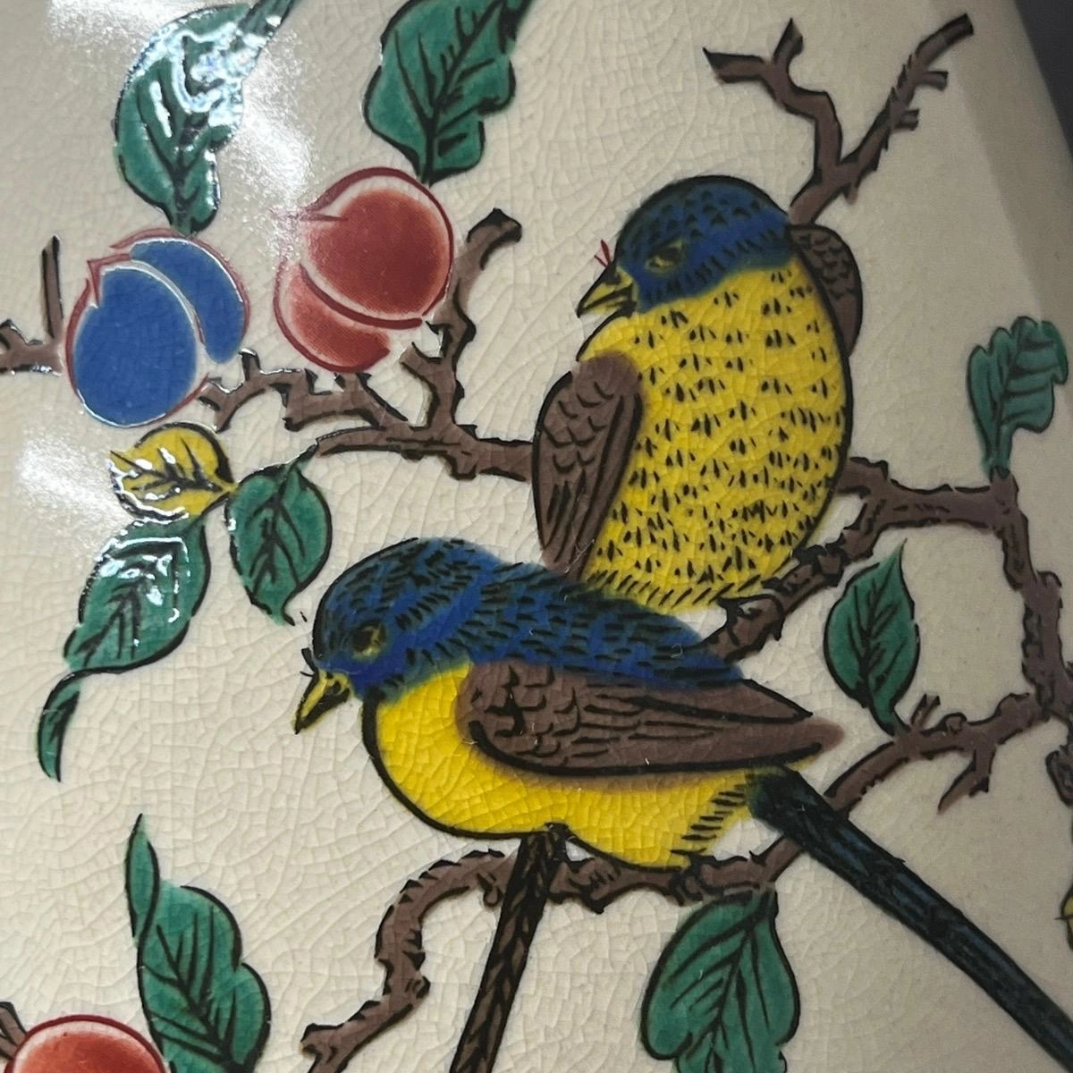 Bình hoa Kutani hoạ tiết chim hoạ mi trên cành là một sản phẩm thủ công độc đáo của Nhật Bản. Bình được làm từ chất liệu sứ cao cấp, mang họa tiết chim hoạ mi tinh tế, và được sơn màu rực rỡ nổi bật. Đặc điểm nổi bật: