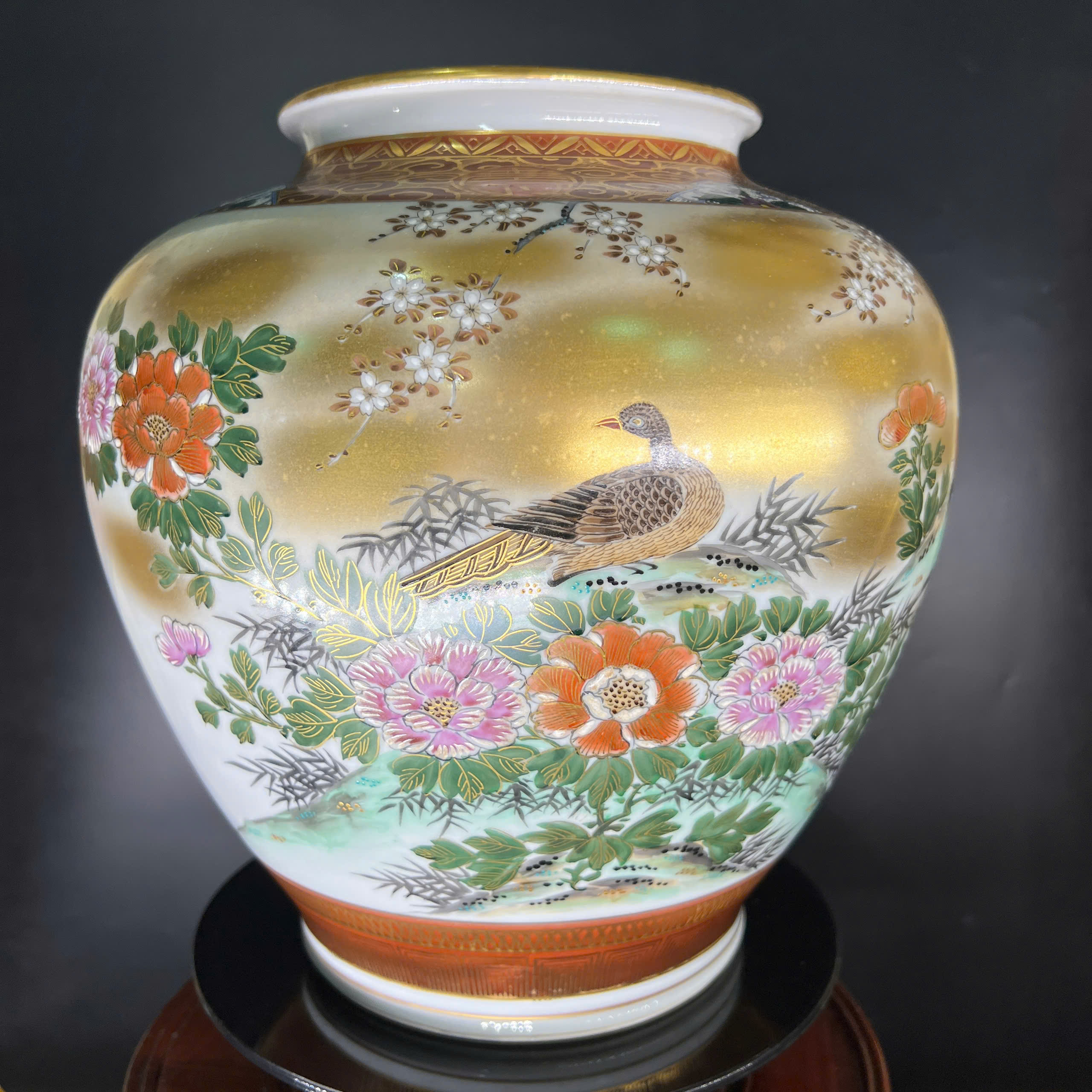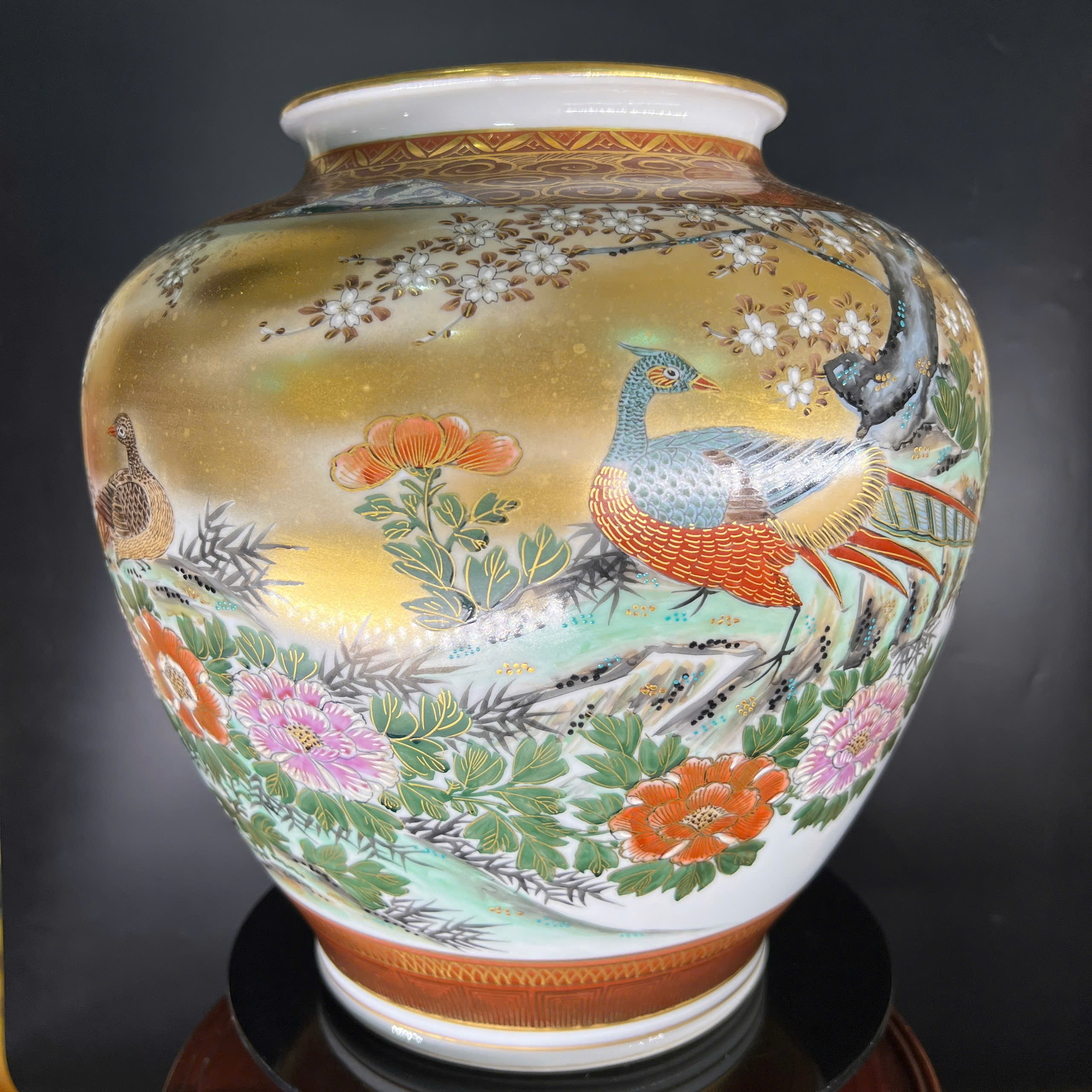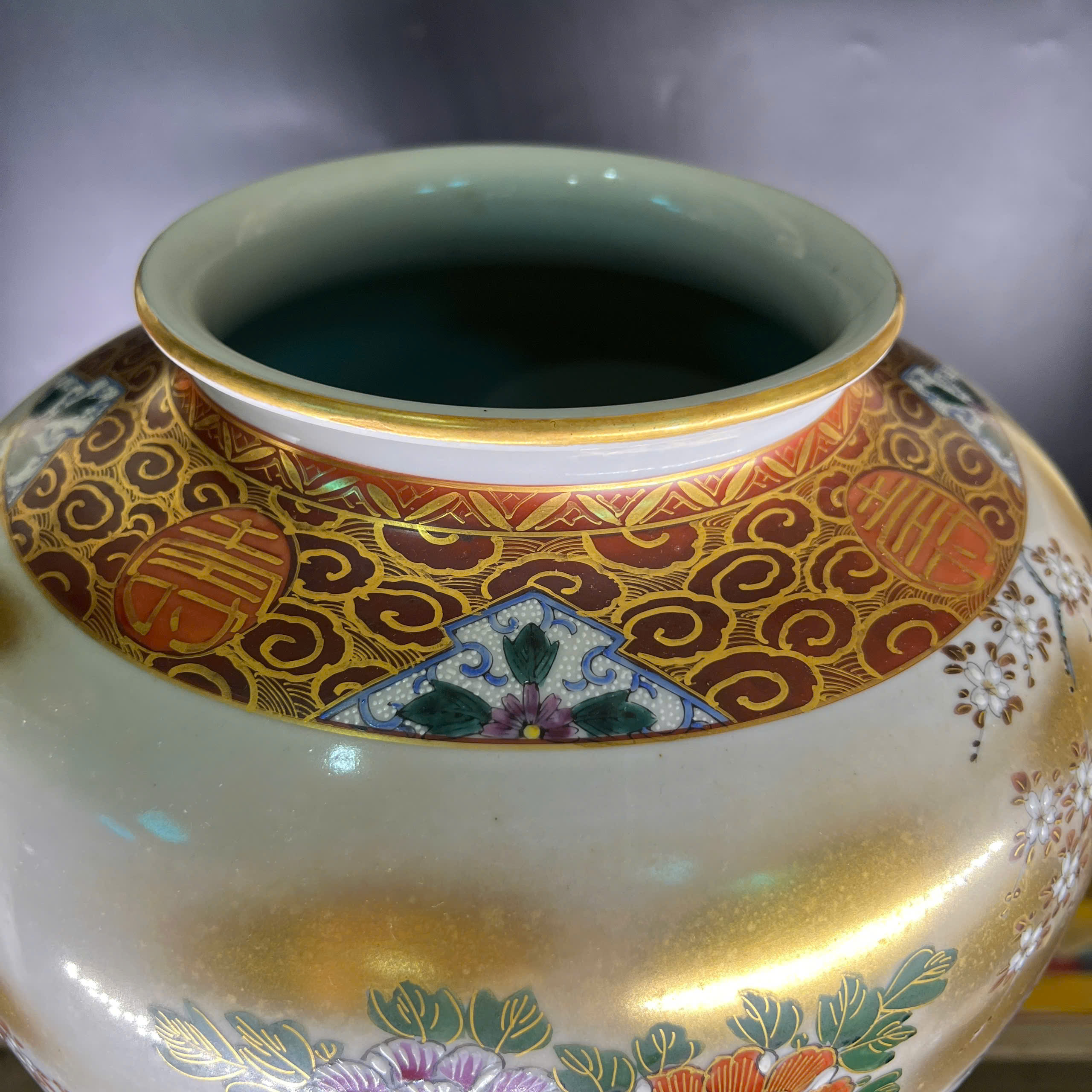 Bình gốm sứ Fukagawa hoạ tiết phong cảnh núi phú sĩ vẽ tay xanh trắng miệng viền mạ vàng