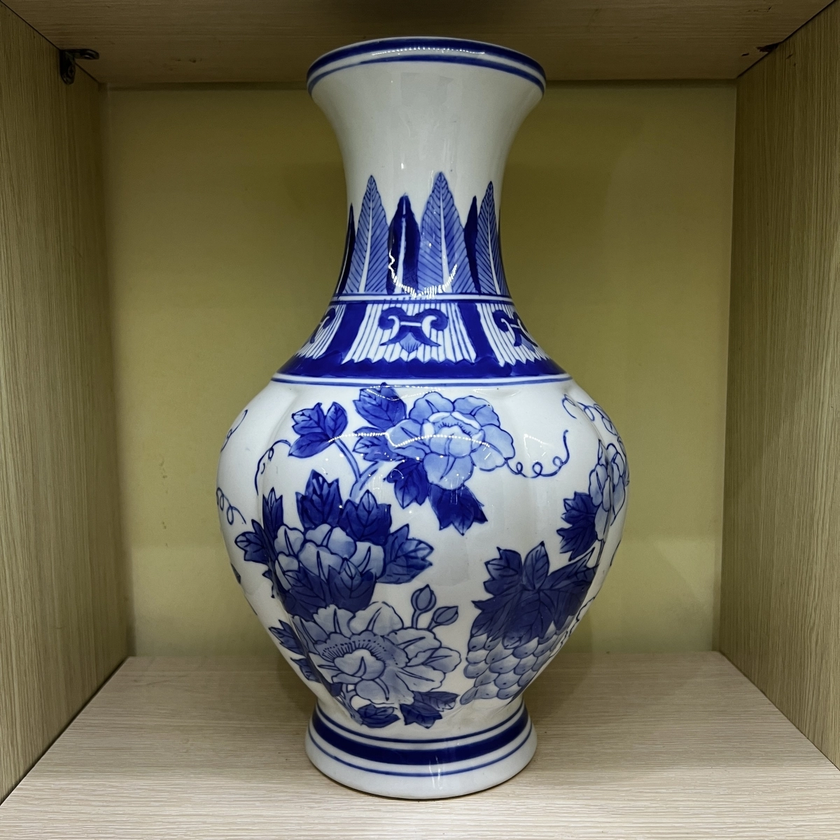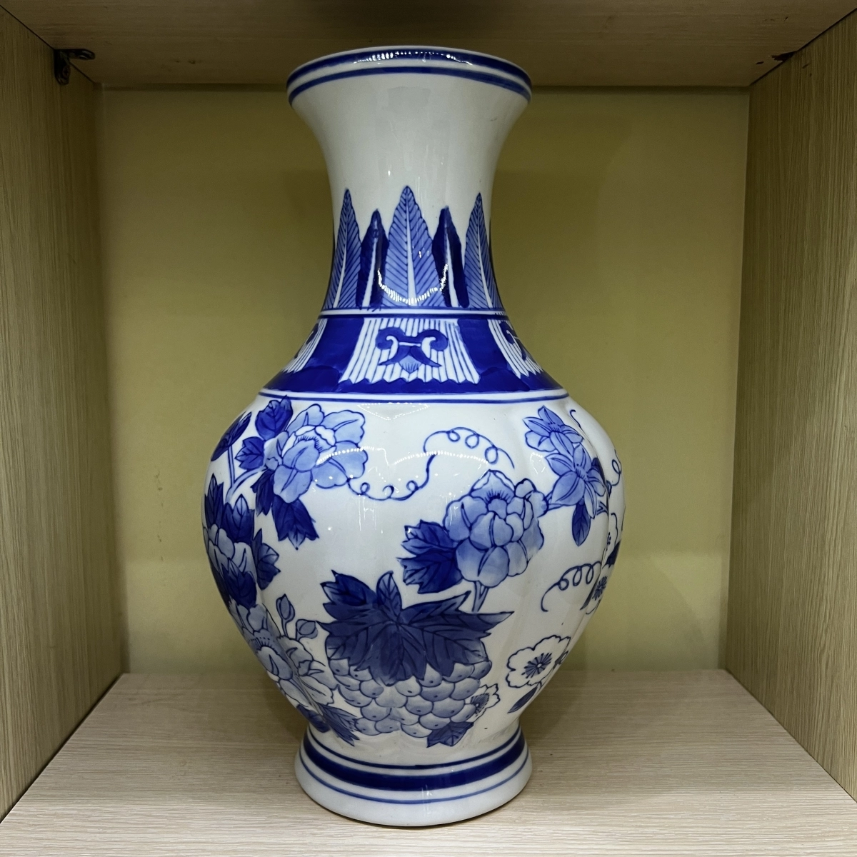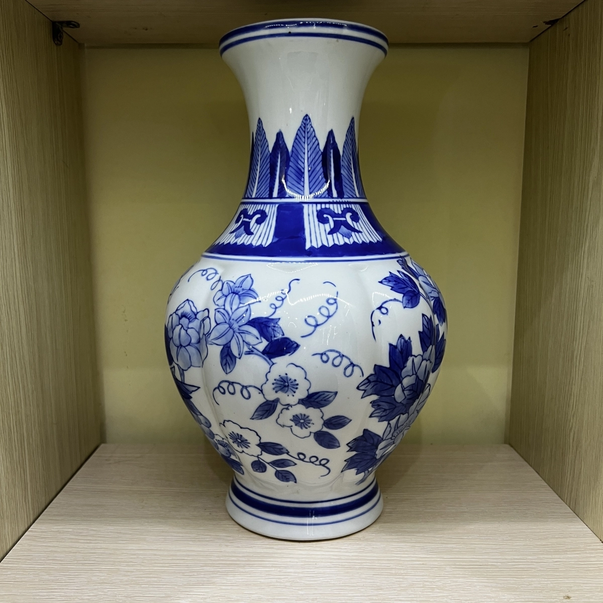 Bình hoa men lam Nhật bản phổi 2 màu cơ bản xanh và trắng, hoạ tiết hoa lá là sản phẩm thủ công đẹp mắt và tinh tế.