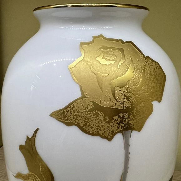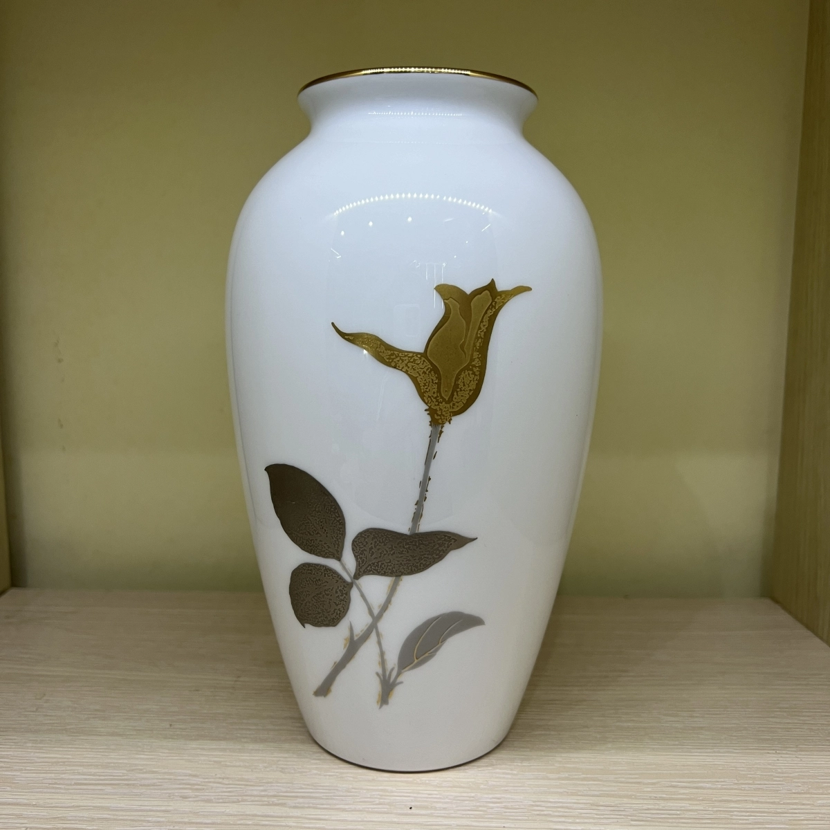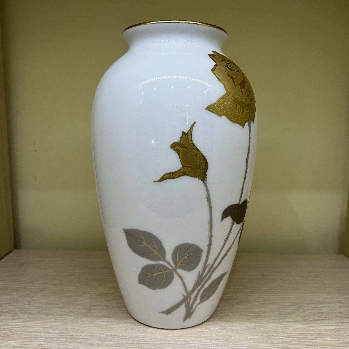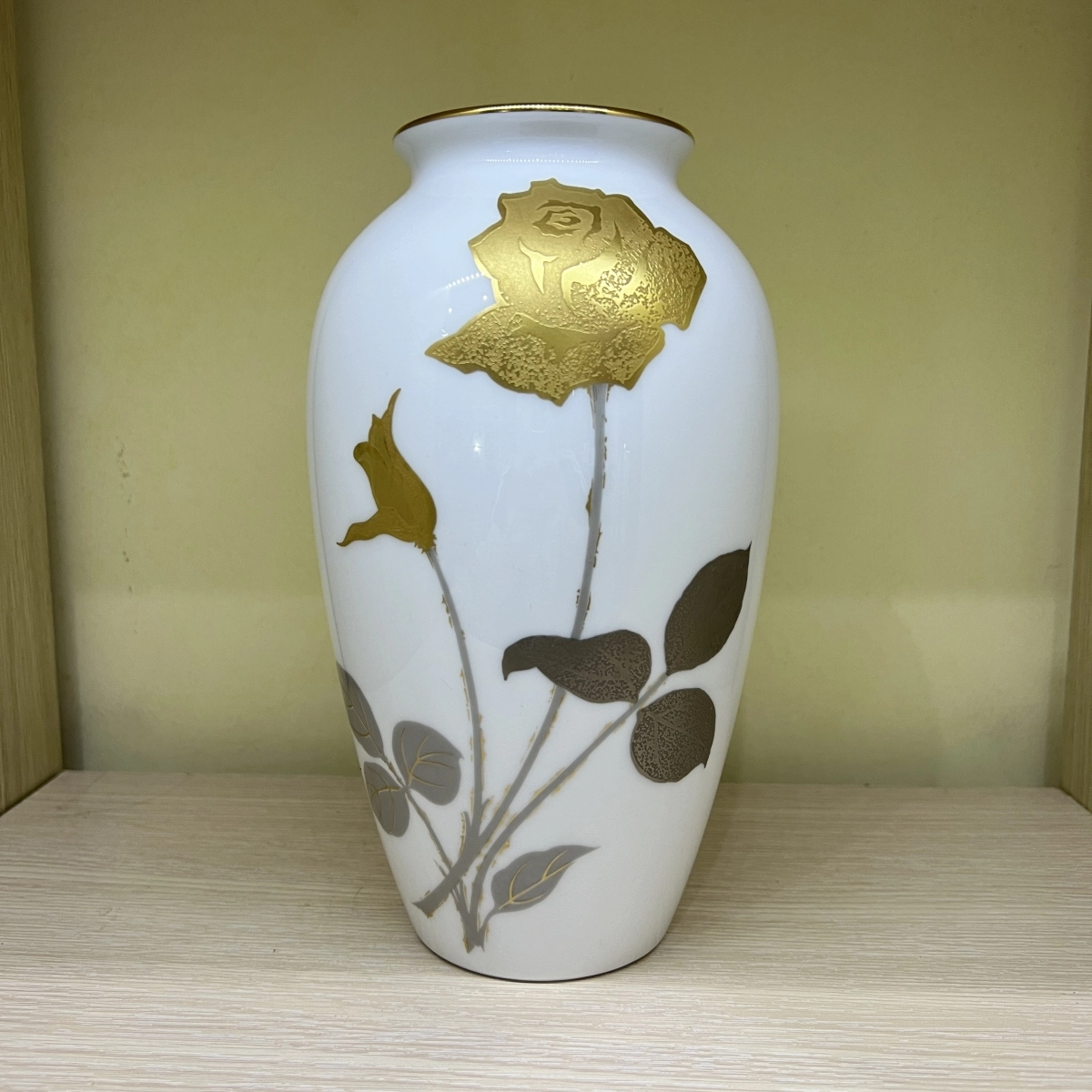 Bình hoa Noritake Okura sứ trắng hoa hồng dát vàng - một món đồ trang trí tuyệt vời để thêm sức sống vào không gian sống của bạn.