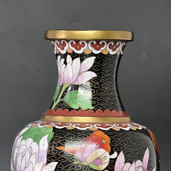 Bình pháp lam màu đen hoa cúc tím cổ đúc đồng là sản phẩm trang trí nội thất tuyệt vời để thêm sự sang trọng và thanh lịch cho không gian sống của bạn.