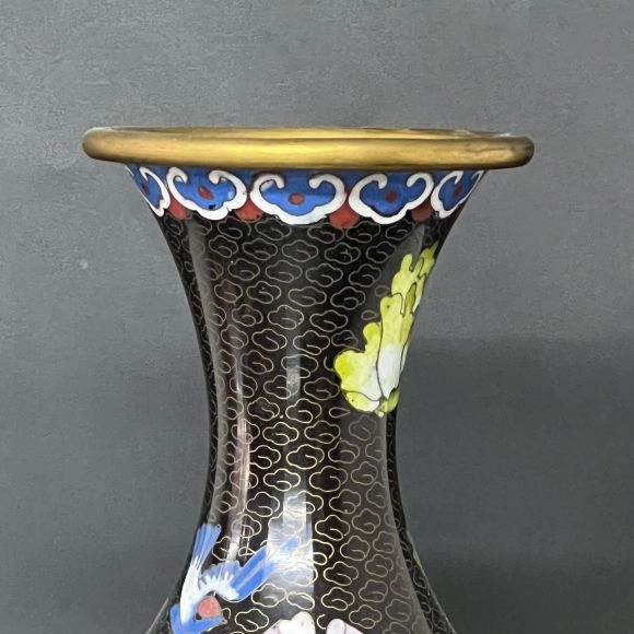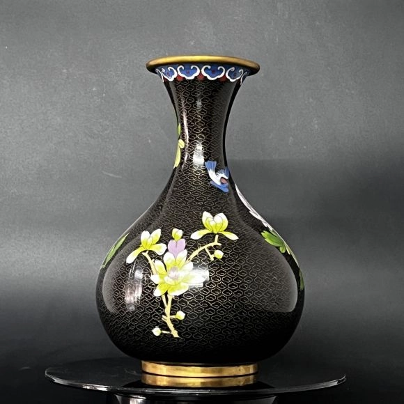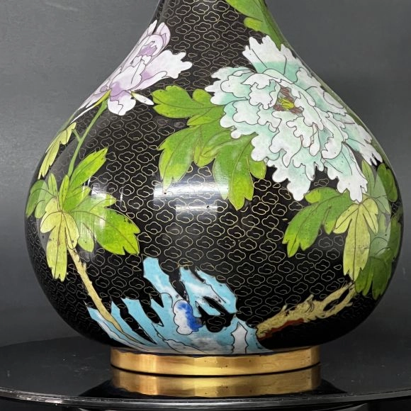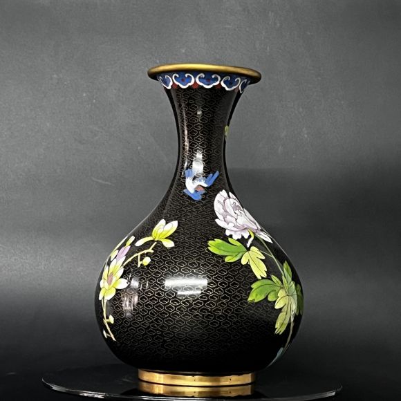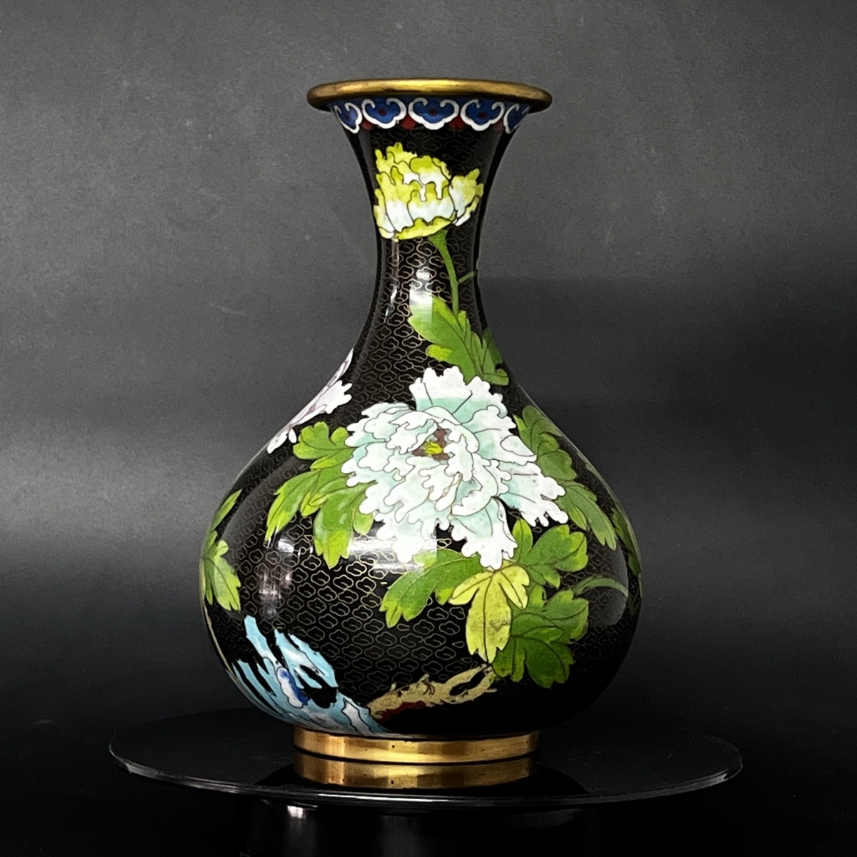 Bình pháp lam đúc đồng màu đen mẫu đơn xanh lam là sự lựa chọn hoàn hảo cho những ai yêu thích trang trí nhà cửa bằng các sản phẩm thủ công.