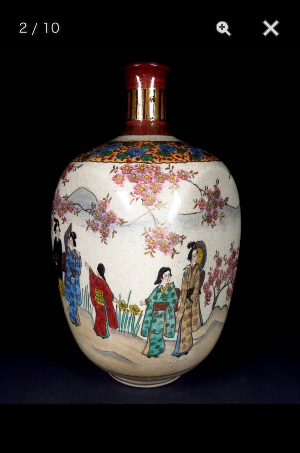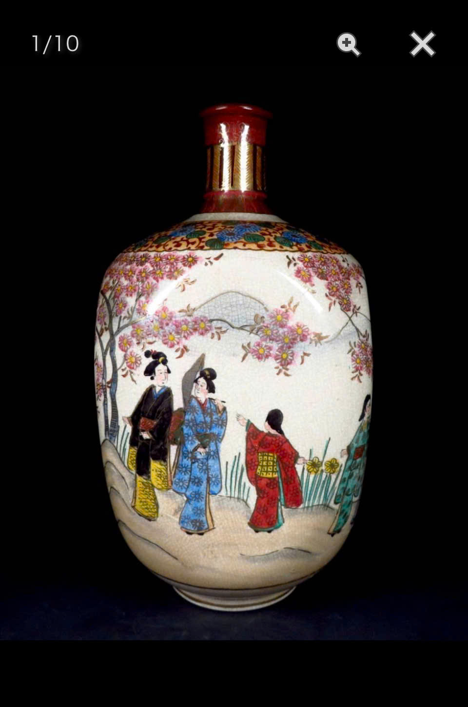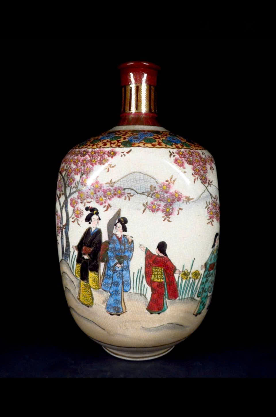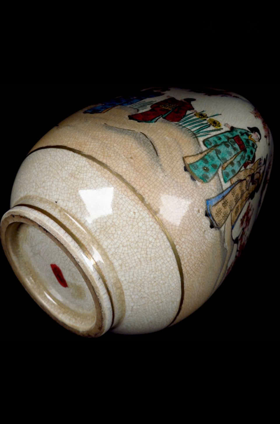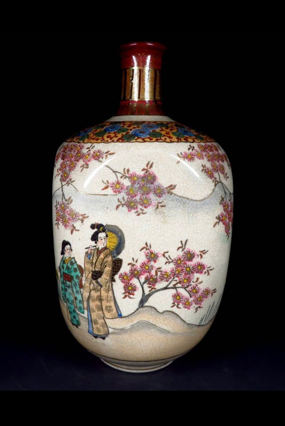 Bình hoa Satsuma cổ thời Minh Trị- Trok 1429, hoạ tiết mạ vàng