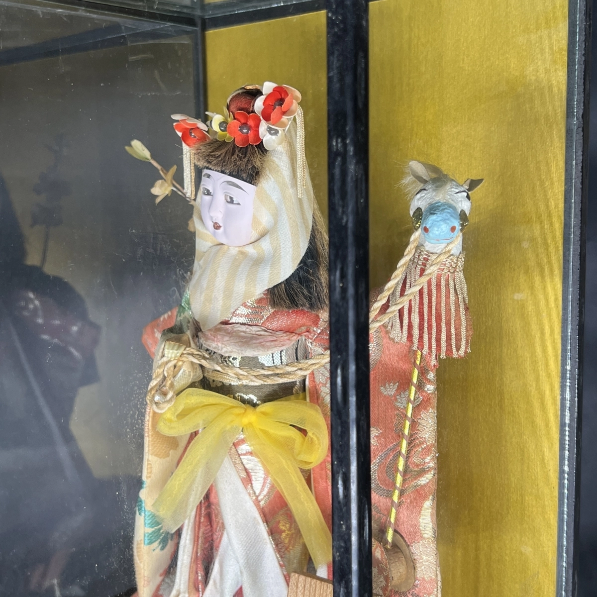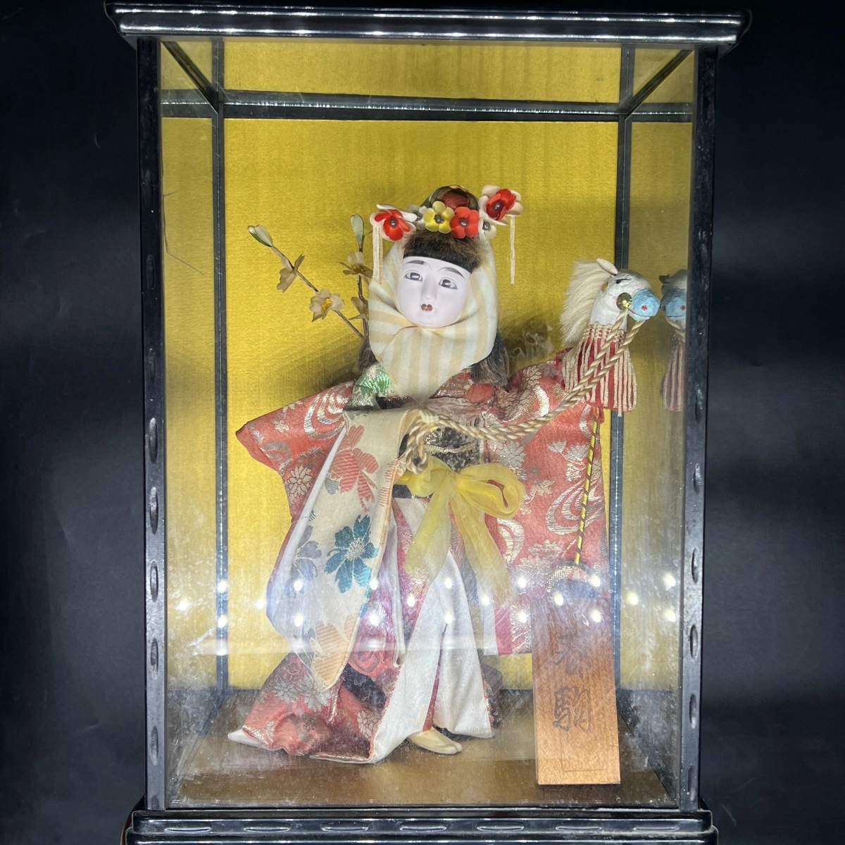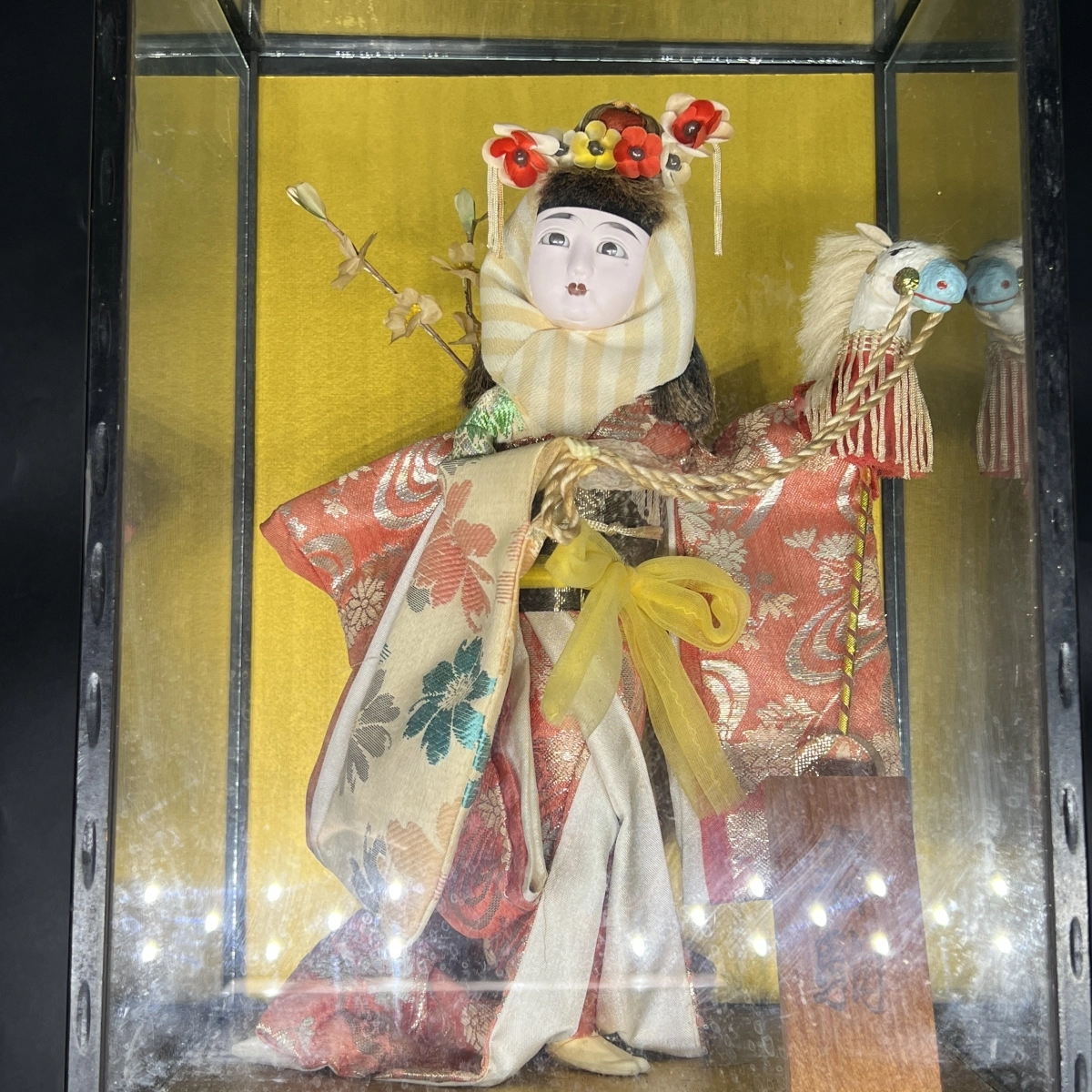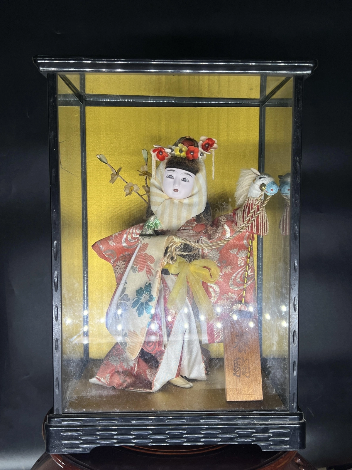 Bình gốm sứ Fukagawa hoạ tiết phong cảnh núi phú sĩ vẽ tay xanh trắng miệng viền mạ vàng
