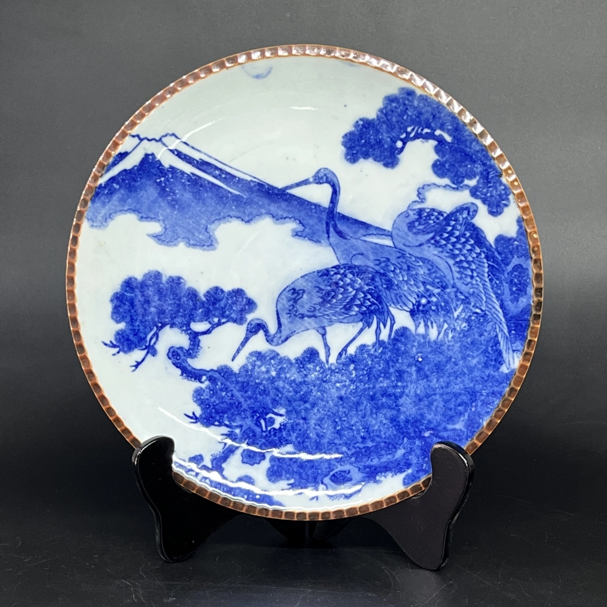 Đĩa gốm men xưa chim hạc biểu tượng cho sự trường thọ, đủ đầy.