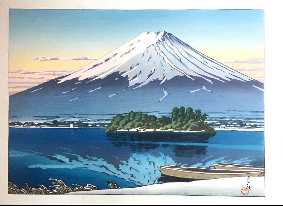 Tranh in khắc gỗ của hoạ sĩ Kawase Hasui -Tác phẩm: Đảo Hoa anh đào Kagoshima