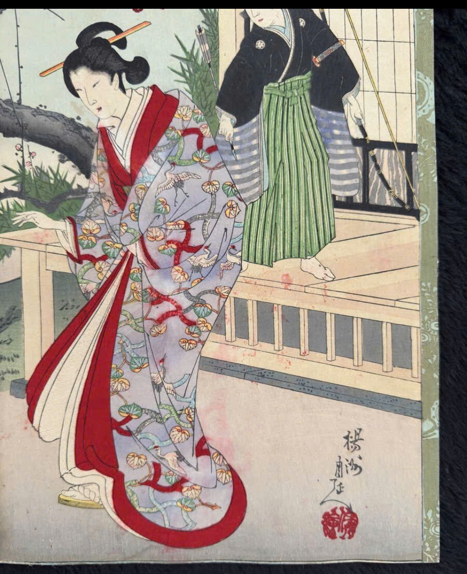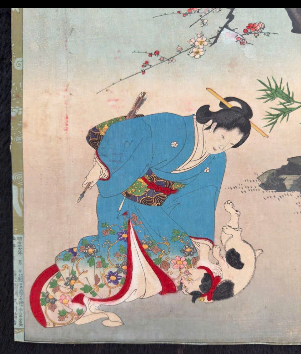 👉 Đây là phong cách rất điển hình của bijin-ga cuối Edo – đầu Meiji, khi tranh không chỉ tả mỹ nhân mà còn kể “câu chuyện đời sống”.