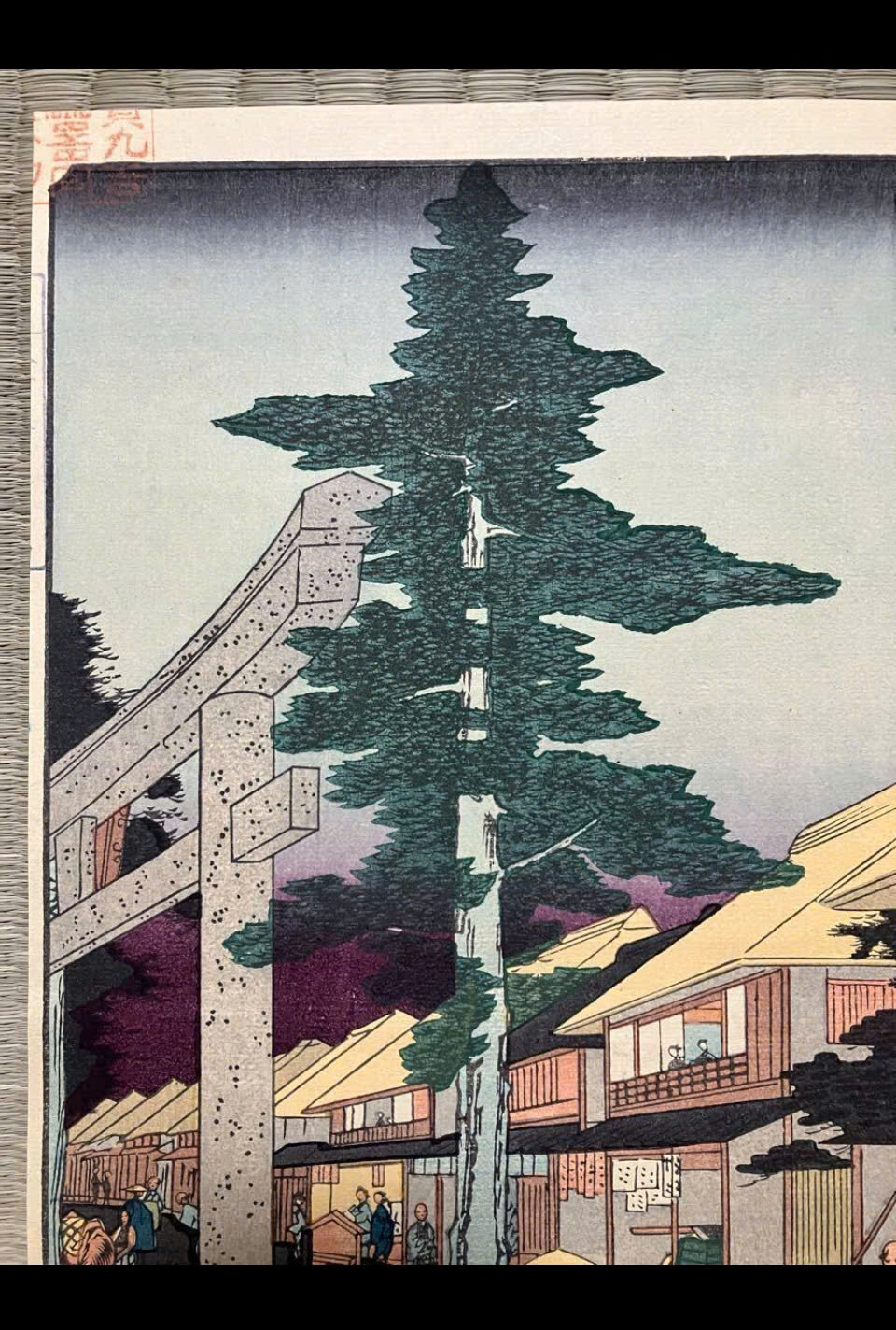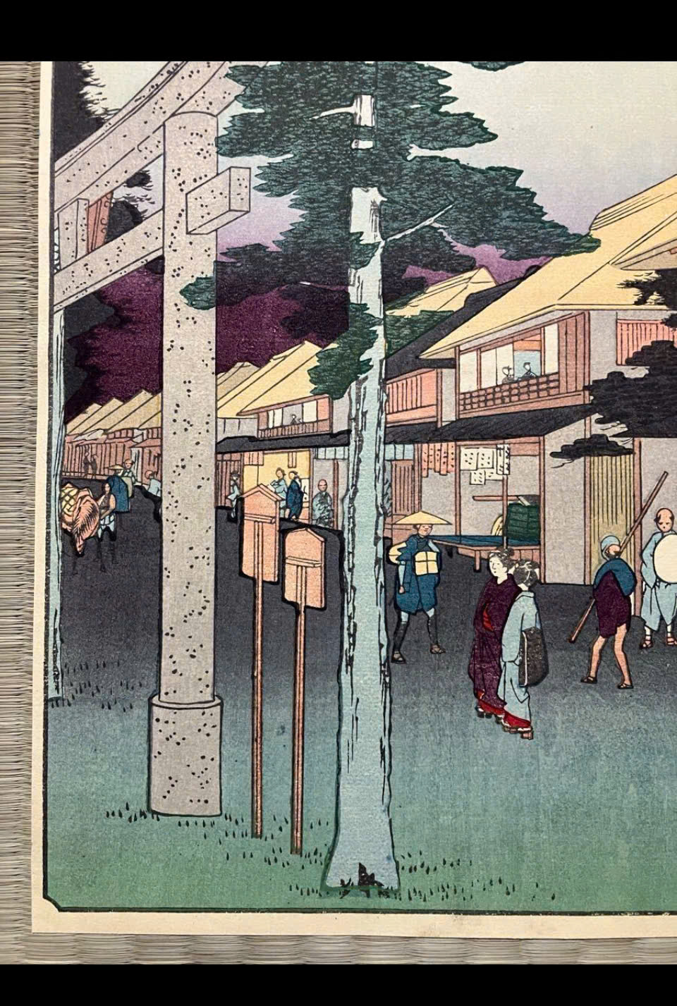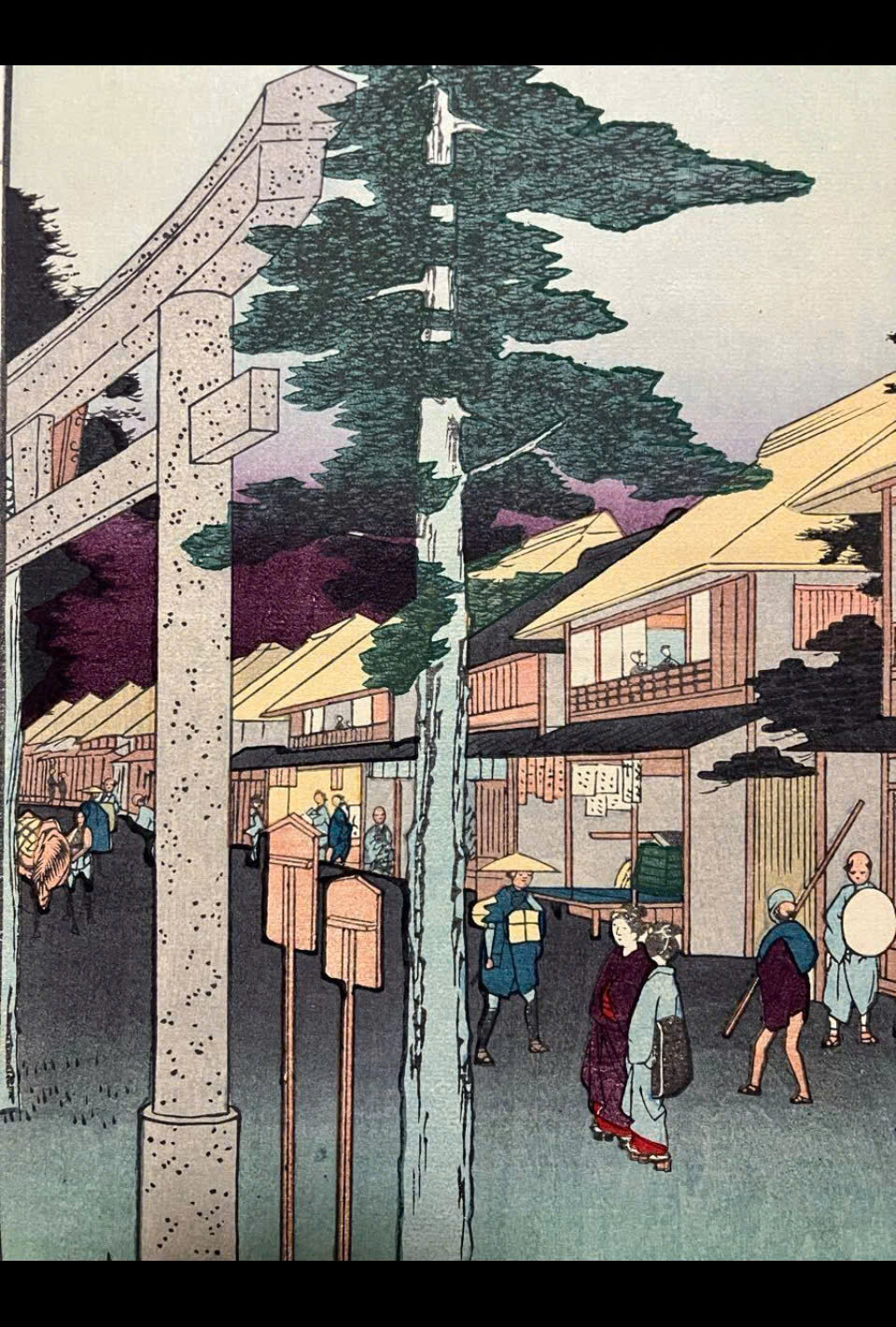 ✨ Nhìn vào tranh, bạn sẽ thấy: * Cổng torii – biểu tượng tâm linh Nhật Bản * Cây tùng cao – tượng trưng cho sự bền vững * Những người lữ khách – mỗi người một hành trình riêng